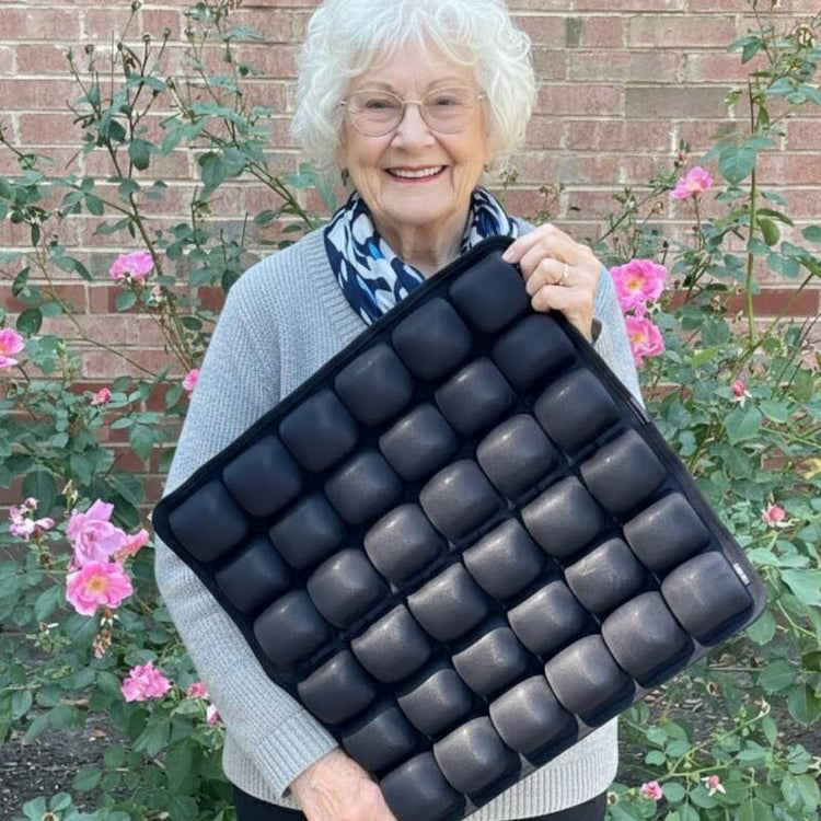 AirSeat+ introduce la tecnologia di alleviamento della pressione utilizzata nelle sedie a rotelle in un cuscino da seduta per uso quotidiano. Progettato per chiunque rimanga seduto per lunghi periodi.